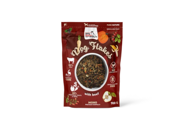 Hipoalergiczne Dog Flakes zostały specjalnie zaprojektowane, aby naśladować pierwotną dietę, opartą o surowe mięso i świeże dodatki, jednocześnie oferując wygodę i bezpieczeństwo tradycyjnej suchej karmy.