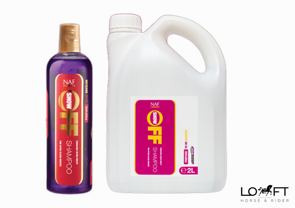 Sposób użycia: Do 1 litra wody należy dodać 20 ml szamponu Show Off lub nałożyć produkt bezpośrednio na wilgotną sierść konia. Wmasuj w sierść, aby uzyskać gęstą pianę i dokładnie spłucz czystą wodą.