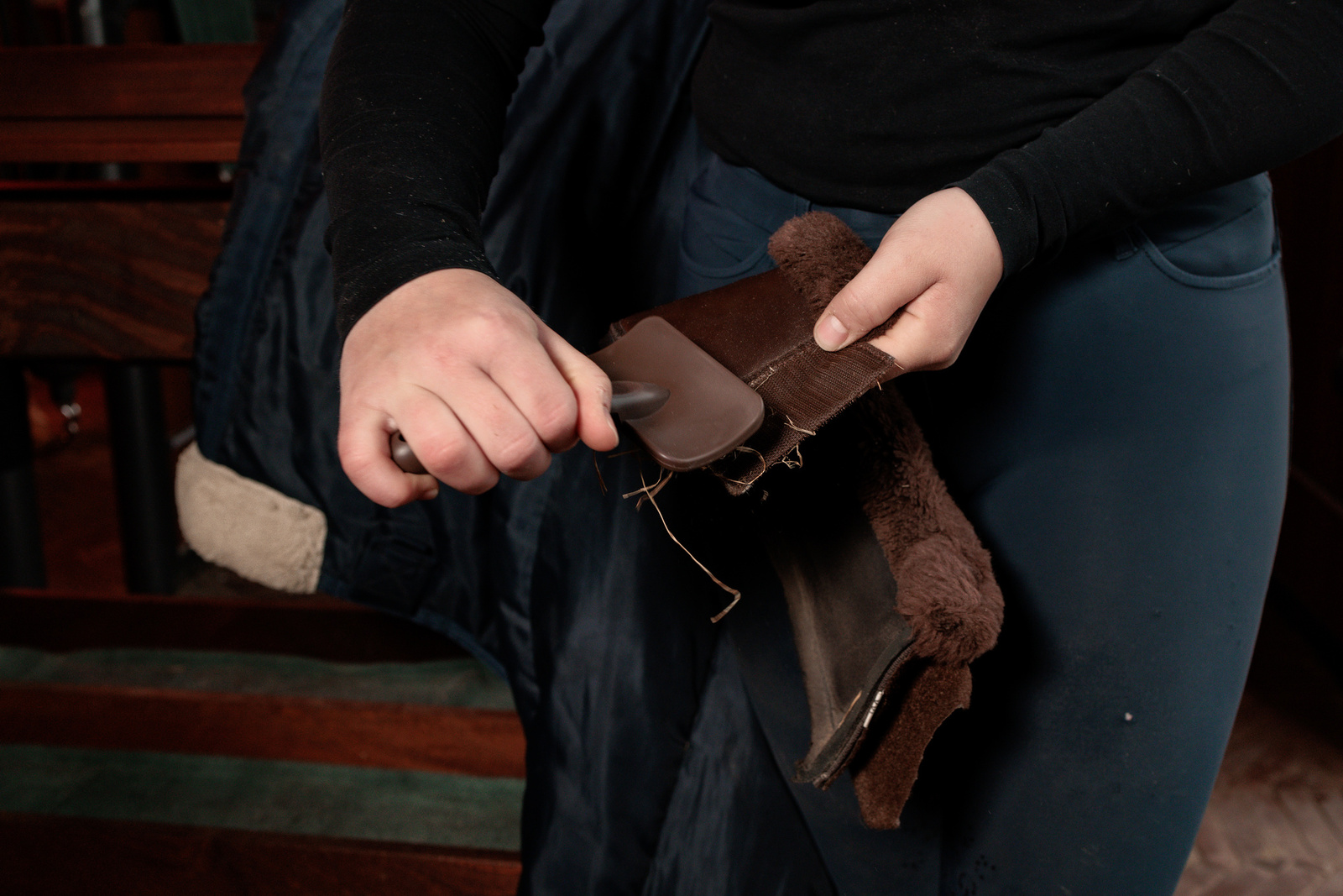 Kompaktowa szczotka stworzona specjalnie do czyszczenia rzepów, które z czasem zapychają się sierścią, włosami, sianem, kurzem i piaskiem. Regularne czyszczenie rzepów nie tylko poprawia ich trzymanie, ale realnie wydłuża żywotność derek, ochraniaczy stajennych, ochraniaczy transportowych i całego sprzętu, który na nich polega.