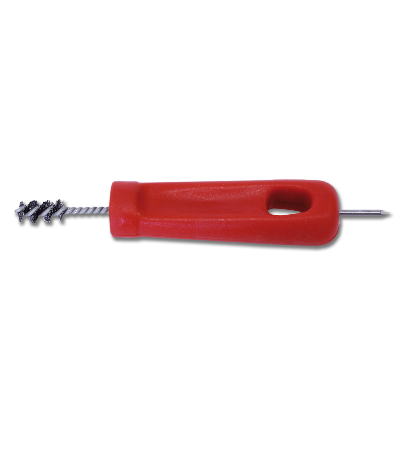 Mała, okrągła szczotka druciana – służy do dokładnego czyszczenia gwintów, co zapewnia prawidłowe osadzenie haceli i minimalizuje ryzyko uszkodzeń.