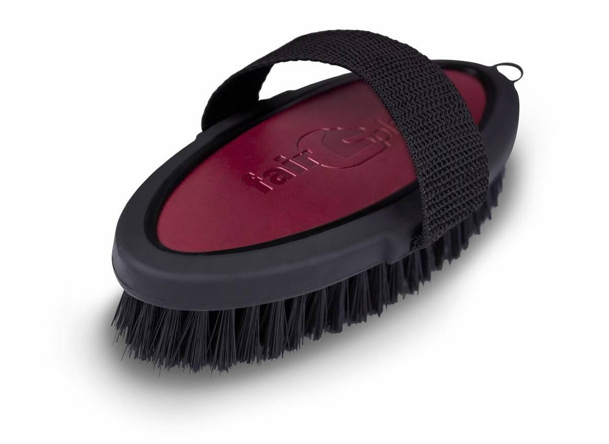Elegancka szczotka do czyszczenia konia, w owalnym kształcie.