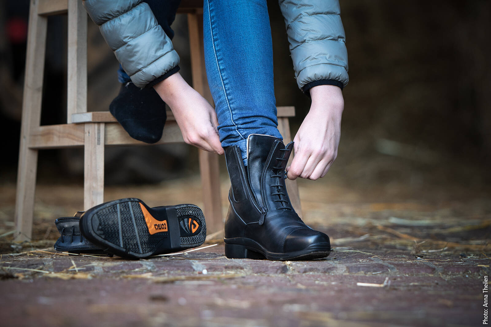 Posiada wodoodporny zamek błyskawiczny YKK oraz podpórki na ostrogi.