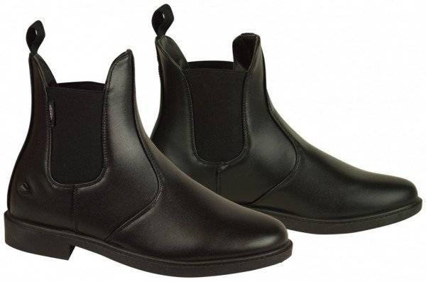 Sztyblety jeździeckie wykonane z materiału doskonale imitującego skórę.