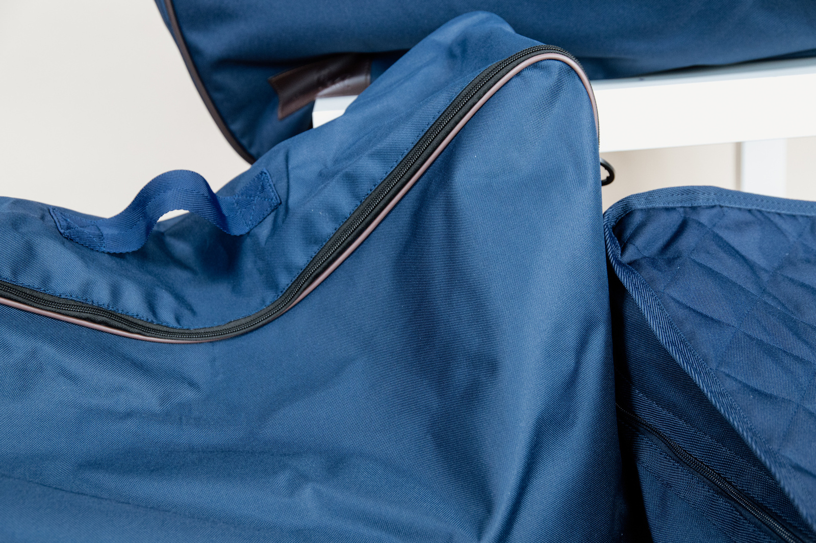 Torbę Kentucky Saddle Pad Bag można wykorzystać również jako organizer w samochodzie, podczas wyjazdów z końmi lub w samej szafie stajennej, gdzie utrzymuje porządek i zapobiega mieszaniu się czapraków z innymi tekstyliami.