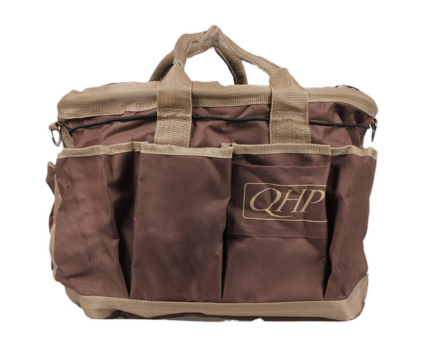 Z przodu torba posiada cztery kieszenie, w tym jedną zapinaną na rzep i jedną z dodatkową kieszenią naszytą i logo QHP.