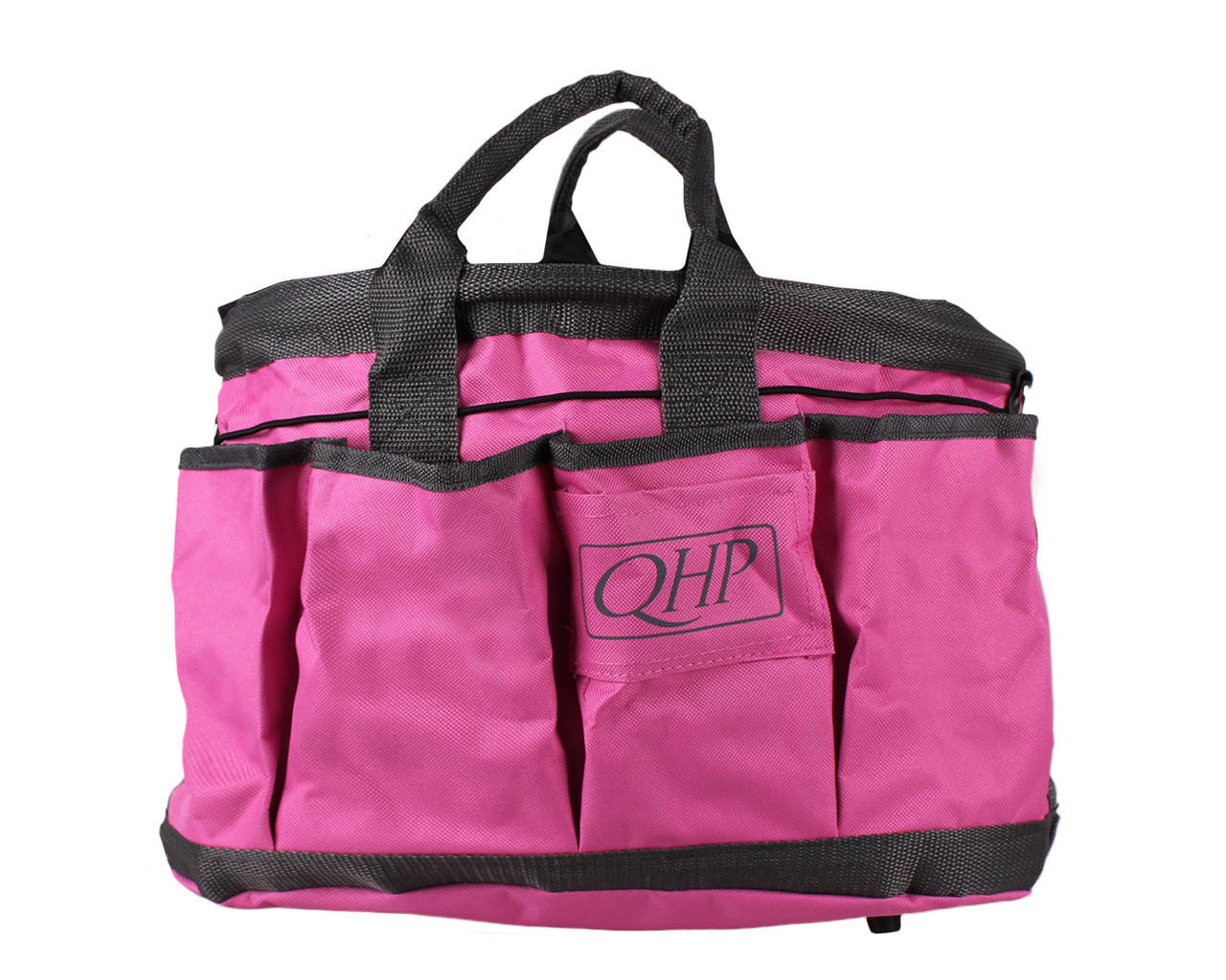 Z przodu torba posiada cztery kieszenie, w tym jedną zapinaną na rzep i jedną z dodatkową kieszenią naszytą i logo QHP.
