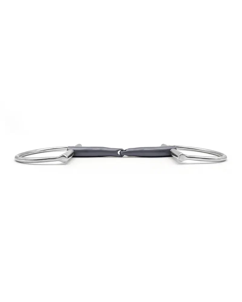 Wędzidło typu D-ring wyróżnia się charakterystycznym kształtem pierścieni bocznych, które przypominają literę „D” – są płaskie z jednej strony i zaokrąglone z drugiej. Dzięki takiej budowie pierścienie są całkowicie nieruchome i mocno stabilizują wędzidło w pysku konia, co sprawia, że sygnały z ręki przekazywane są bardzo precyzyjnie i bezpośrednio.