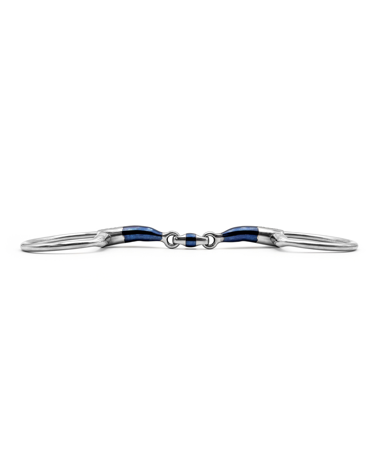 Charakterystyczną cechą tego modelu są poziome, płasko ułożone łączenia, które w odróżnieniu od tradycyjnych, pionowych przegubów, rozkładają się równomiernie na języku. Dzięki temu zapewnia delikatniejszy nacisk i większy komfort, co jest szczególnie ważne dla koni z niskim podniebieniem lub wrażliwymi krawędziami żuchwy. Konstrukcja ta zmniejsza ryzyko podrażnień, nadmiernego żucia czy podnoszenia głowy w odpowiedzi na napięcie wodzy.