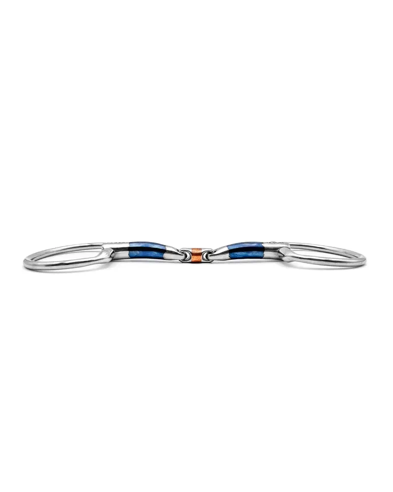 Sweet Iron (oksydowane żelazo) to materiał, który w trakcie użytkowania ulega naturalnemu procesowi utleniania, tworząc powierzchnię o specyficznym, „słodkim” smaku. Ten smak znacząco zwiększa wydzielanie śliny i zachęca konie do aktywnego poszukiwania kontaktu z ręką jeźdźca.