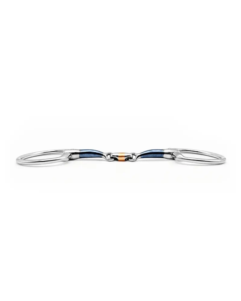 Sweet Iron (oksydowane żelazo) to materiał, który w trakcie użytkowania ulega naturalnemu procesowi utleniania, tworząc powierzchnię o specyficznym, „słodkim” smaku. Ten smak znacząco zwiększa wydzielanie śliny i zachęca konie do aktywnego poszukiwania kontaktu z ręką jeźdźca.