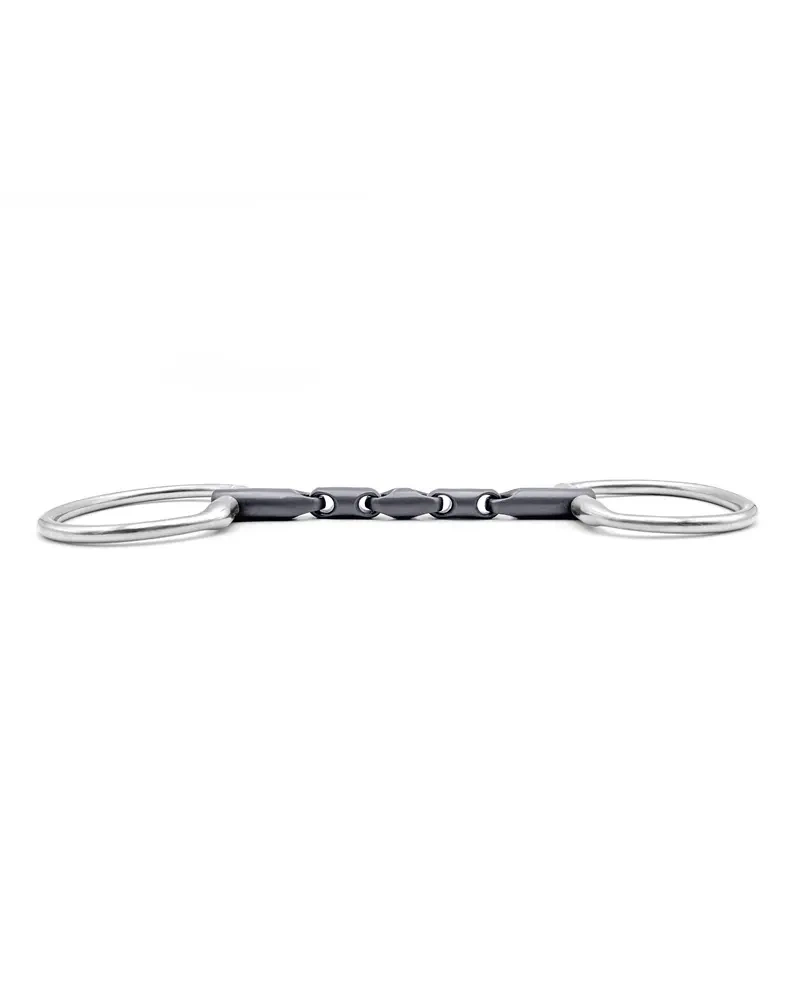 Model Wilma charakteryzuje się gładkimi, miękko działającymi przegubami, które zapewniają równomierne i delikatne rozłożenie nacisku w pysku. Wędzidło jest elastyczne we wszystkich kierunkach, co pozwala mu dopasować się do kształtu pyska konia, a jednocześnie zapobiega przed „zawieszeniem się” na wędzidle – nie daje punktu oparcia, przez co kontakt w ręce staje się miękki, lekki i elastyczny.