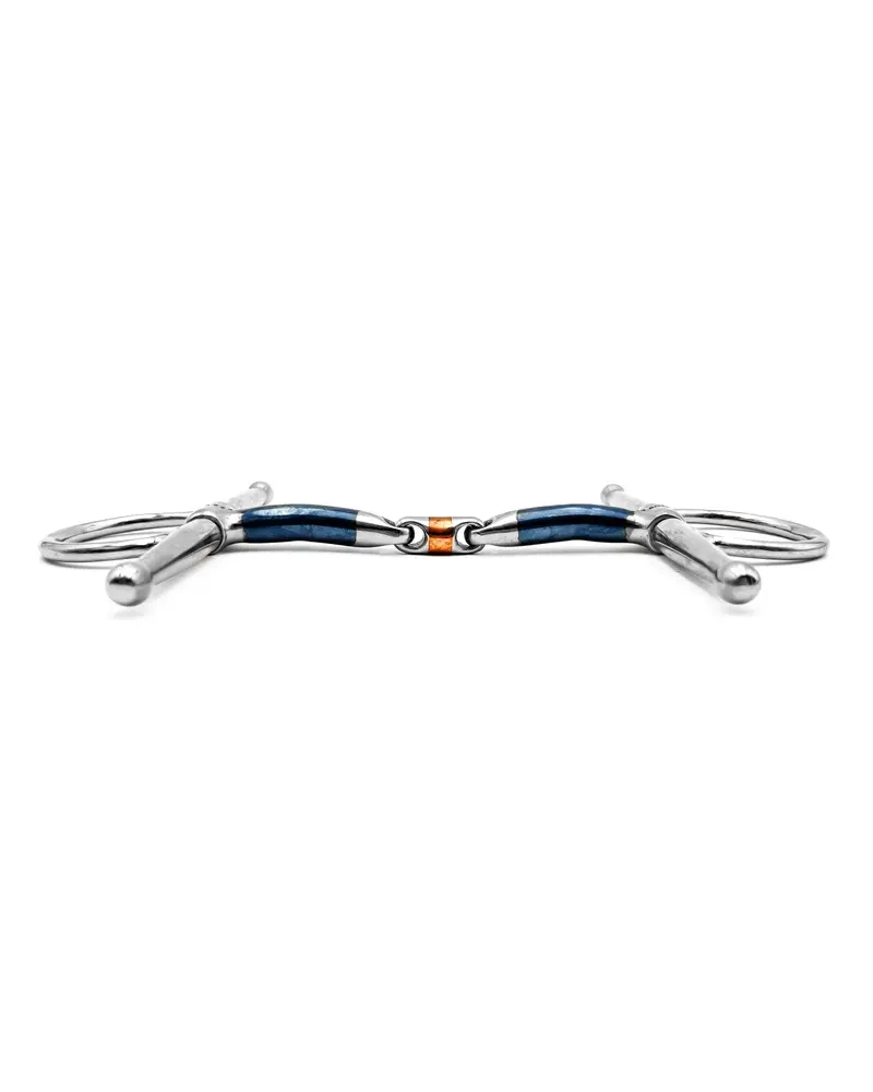 Unikalna konstrukcja opiera się na dwóch przegubach, które zostały zaprojektowane w taki sposób, aby minimalizować nacisk na język i równomiernie rozkładać siły w jamie ustnej. Kluczowym aspektem działania tego modelu jest bar relief, czyli odciążenie bezzębnych krawędzi, polegające na przeniesienie nacisku z bardziej wrażliwych struktur w pysku konia, co przekłada się na wyższy komfort, mniejsze napięcie i większą chęć do współpracy.
