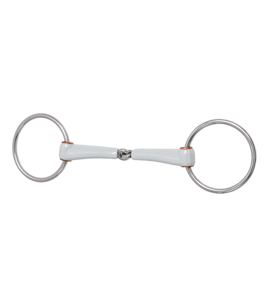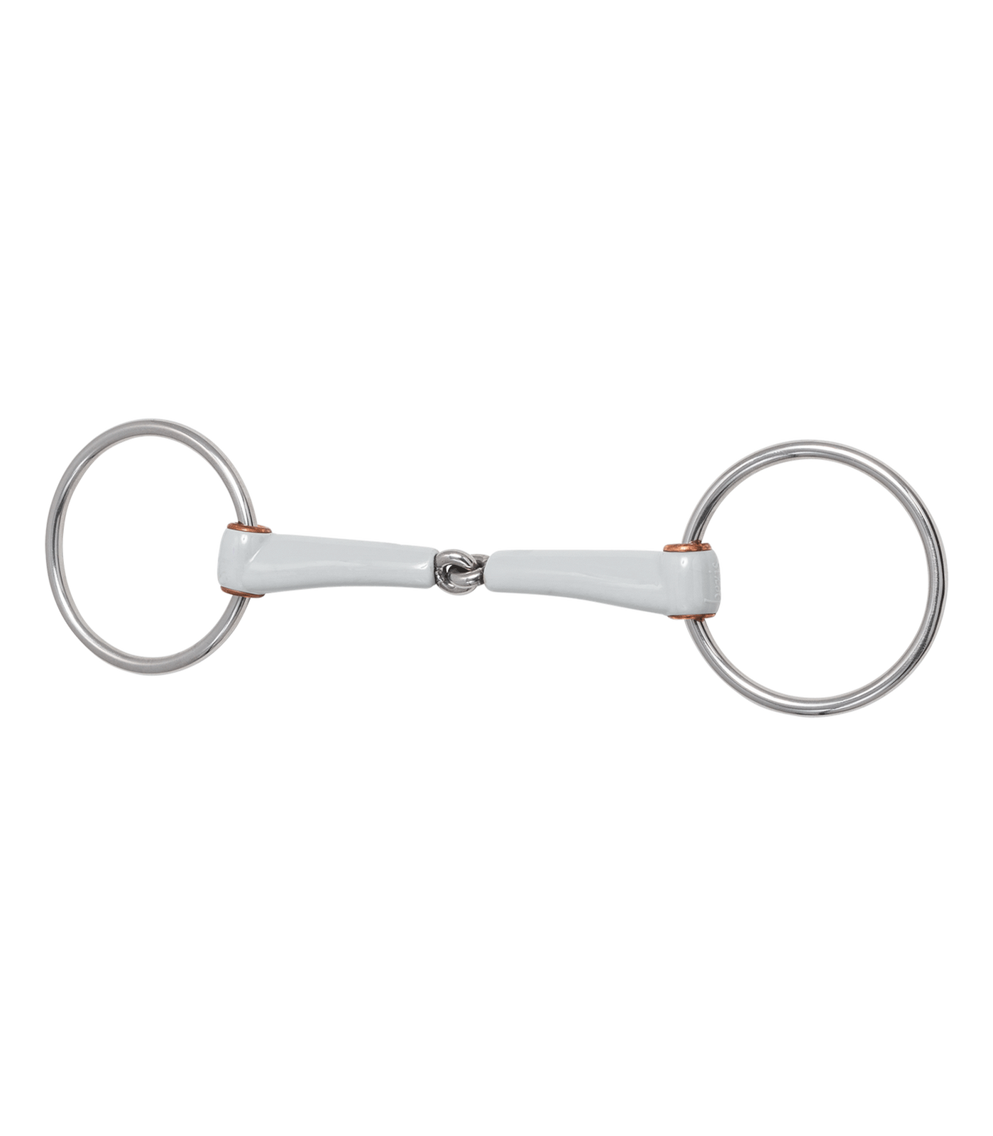 • Wędzidło z tworzywa sztucznego. Smukły kształt zapewnia większy komfort nawet w mniejszych pyskach.