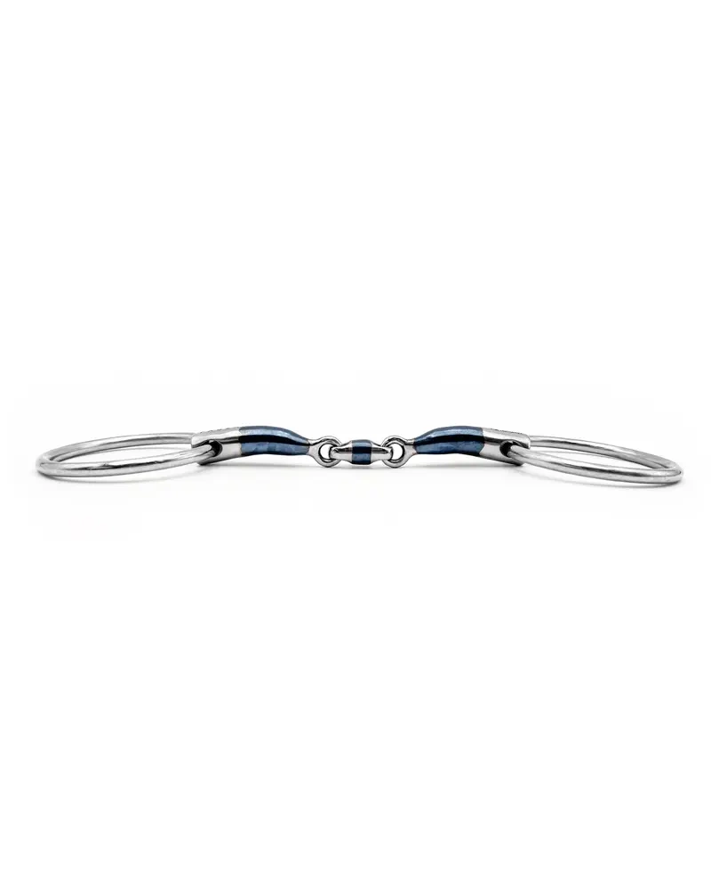 Charakterystyczną cechą tego modelu są poziome, płasko ułożone łączenia, które w odróżnieniu od tradycyjnych, pionowych przegubów, rozkładają się równomiernie na języku. Dzięki temu zapewnia delikatniejszy nacisk i większy komfort, co jest szczególnie ważne dla koni z niskim podniebieniem lub wrażliwymi krawędziami żuchwy. Konstrukcja ta zmniejsza ryzyko podrażnień, nadmiernego żucia czy podnoszenia głowy w odpowiedzi na napięcie wodzy.