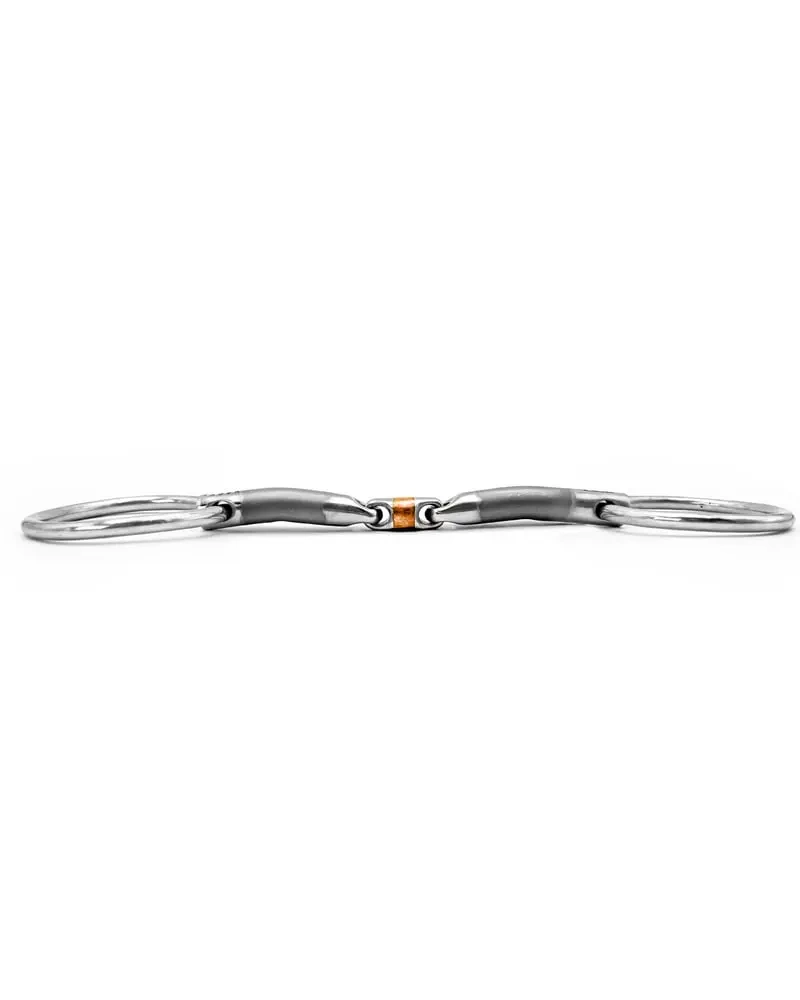 Sweet Iron (oksydowane żelazo) to materiał, który w trakcie użytkowania ulega naturalnemu procesowi utleniania, tworząc powierzchnię o specyficznym, „słodkim” smaku. Ten smak znacząco zwiększa wydzielanie śliny i zachęca konie do aktywnego poszukiwania kontaktu z ręką jeźdźca.