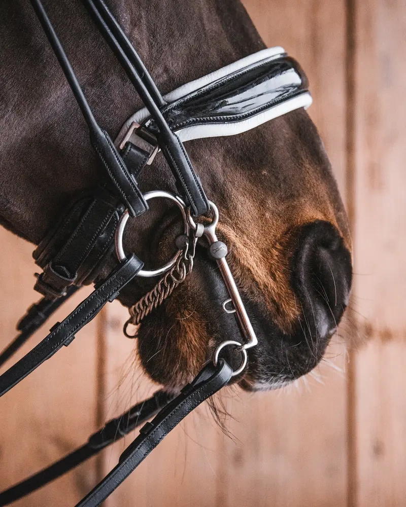 Model Stephanie to innowacyjne, podwójnie łamane wędzidło anatomiczne z ruchomym wałeczkiem, zaprojektowane specjalnie z myślą o koniach silnych, które mają tendencję do ciągnięcia, opierania się na wędzidle lub stają się „ciężkie na ręce”, a jednocześnie wykazują wrażliwość języka i nie tolerują stałego nacisku. Ruchomy, umieszczony nisko wałeczek (roller) zwiększa punktowy nacisk tylko wtedy, gdy koń zaczyna się opierać lub ciągnąć, dzięki czemu wędzidło zachowuje łagodność w normalnym użytkowaniu, a działa precyzyjnie tylko w momentach potrzeby. To doskonałe rozwiązanie dla koni, które bywają oporne na sygnały z ręki, reagują z opóźnieniem lub grają językiem, próbując uwolnić się od nieprzyjemnego kontaktu.