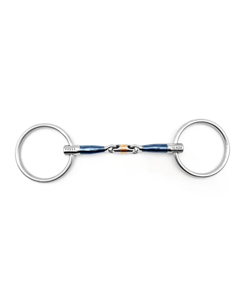 • Fager Jack to podwójnie łamane wędzidło, zaprojektowane z myślą o koniach, które mają trudności z utrzymaniem stabilnego kontaktu, są mało reaktywne na pomoce, odczuwają sztywność w pysku lub wykazują nadwrażliwość na nacisk w okolicy bezzębnych krawędzi.