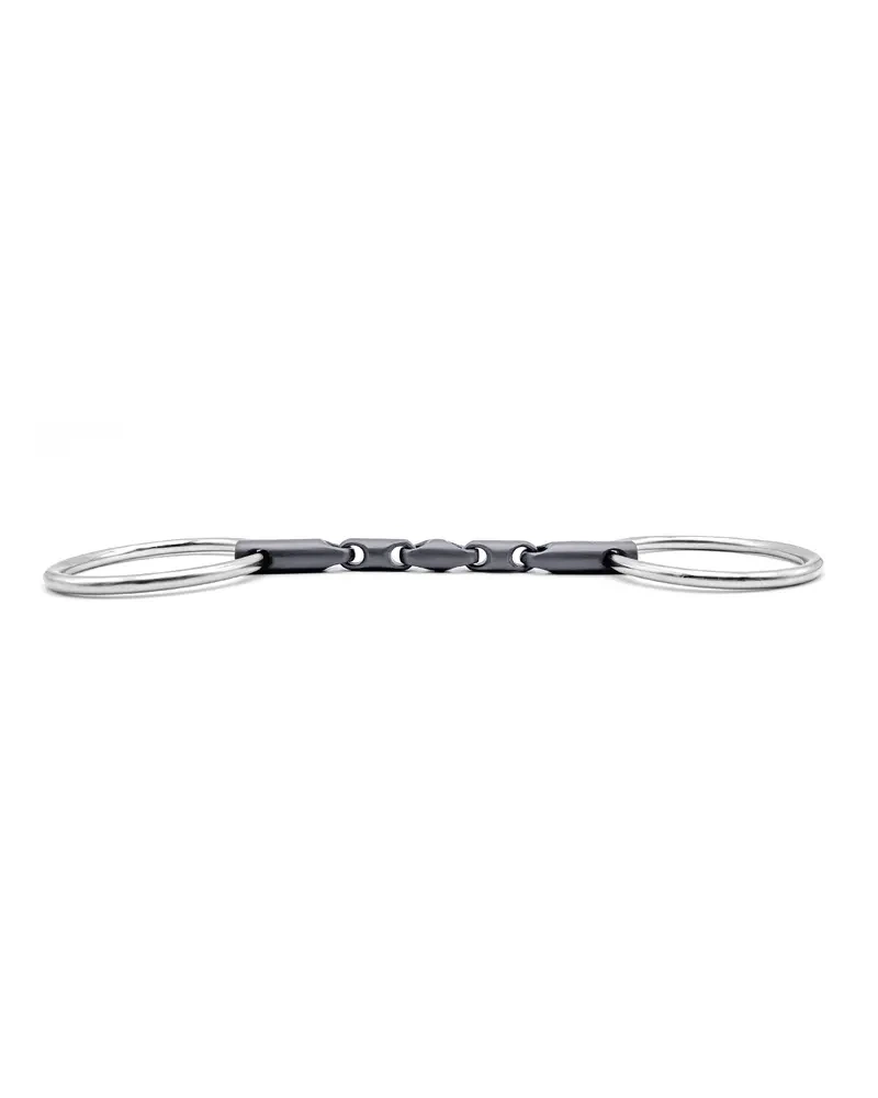 Tytan to wyjątkowo lekki, trwały i całkowicie bezsmakowy materiał, który naturalnie dostosowuje się do temperatury pyska konia. Dzięki temu wędzidła tytanowe sprzyjają miękkiemu kontaktowi i zachęcają konia do rozluźnienia. To doskonały wybór dla koni z alergiami lub nadwrażliwością. Jest bardzo lekki, co sprawia, że koń lepiej reaguje na sygnały ręki, a jeździec ma poczucie wyjątkowo lekkiego kontaktu. Nie rdzewieje, nie utlenia się i nie wymaga praktycznie żadnej szczególnej pielęgnacji, co czyni go doskonałym wyborem dla osób poszukujących trwałych i bezobsługowych rozwiązań.