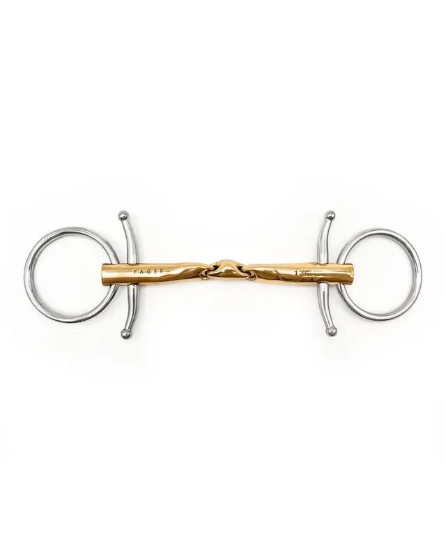 Wędzidło Baby Fulmer to opatentowany przez markę Fager wariant klasycznego wędzidła z wąsami. Łączy w sobie zalety dwóch popularnych kiełzn: wędzidła z luźnymi pierścieniami (loose ring), które zapewnia swobodę ruchu i elastyczność sygnałów, oraz wędzidła z wąsami, które pomaga w precyzyjnym prowadzeniu konia, a także wspiera jego równowagę i zachęca do prawidłowego ustawienia. Dzięki temu stanowi doskonały wybór dla koni młodych lub tych, które mają trudności z utrzymywaniem prostoliniowości i równowagi na łukach.