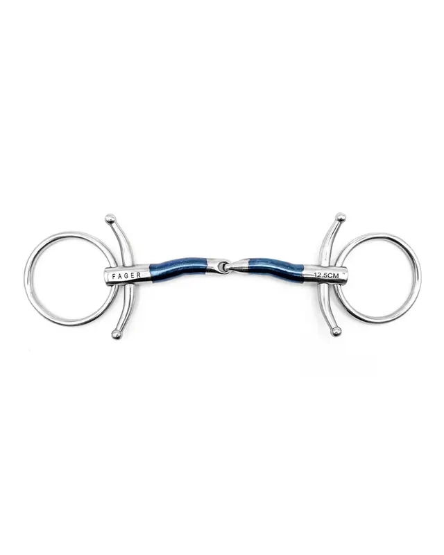 • Fager Gustav to wszechstronne i innowacyjne wędzidło, zaprojektowane z myślą o koniach z wyjątkowo wrażliwą jamą ustną, które wykazują trudności w utrzymaniu stałego kontaktu lub reagują nerwowo na działanie wodzy.