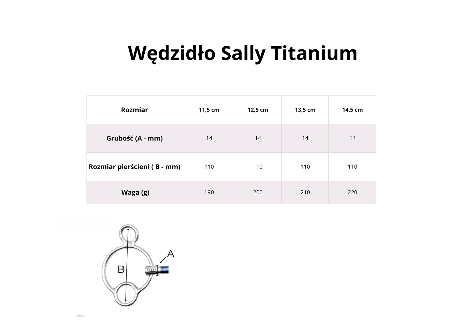 - Fager Sally to wyjątkowo precyzyjne wędzidło podwójnie łamane, zaprojektowane z myślą o koniach, które bywają silne i opierają się na ręce, a jednocześnie mają wrażliwy język i potrzebują delikatniejszego kontaktu.