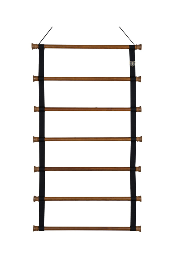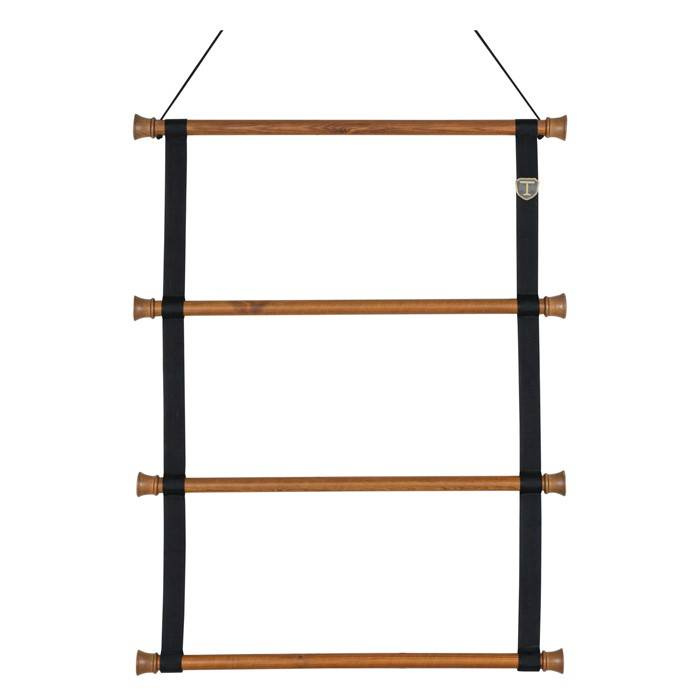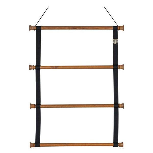 • Wieszak wykonany z wytrzymałej taśmy oraz drewnianych drążków. Ułatwia utrzymanie porządku w stajni, świetnie sprawdzi się również na zawodach.