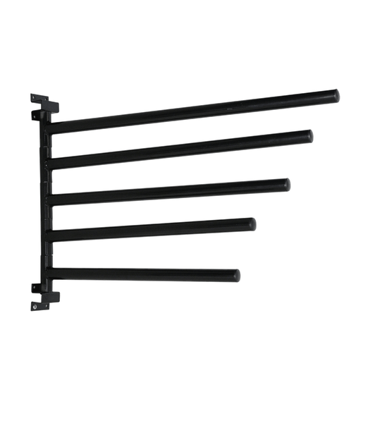 Dzięki pięciu obrotowym ramionom, wieszak umożliwia łatwe zawieszenie kilku czapraków, co pozwala na utrzymanie porządku i zapewnia przestronność w stajni.