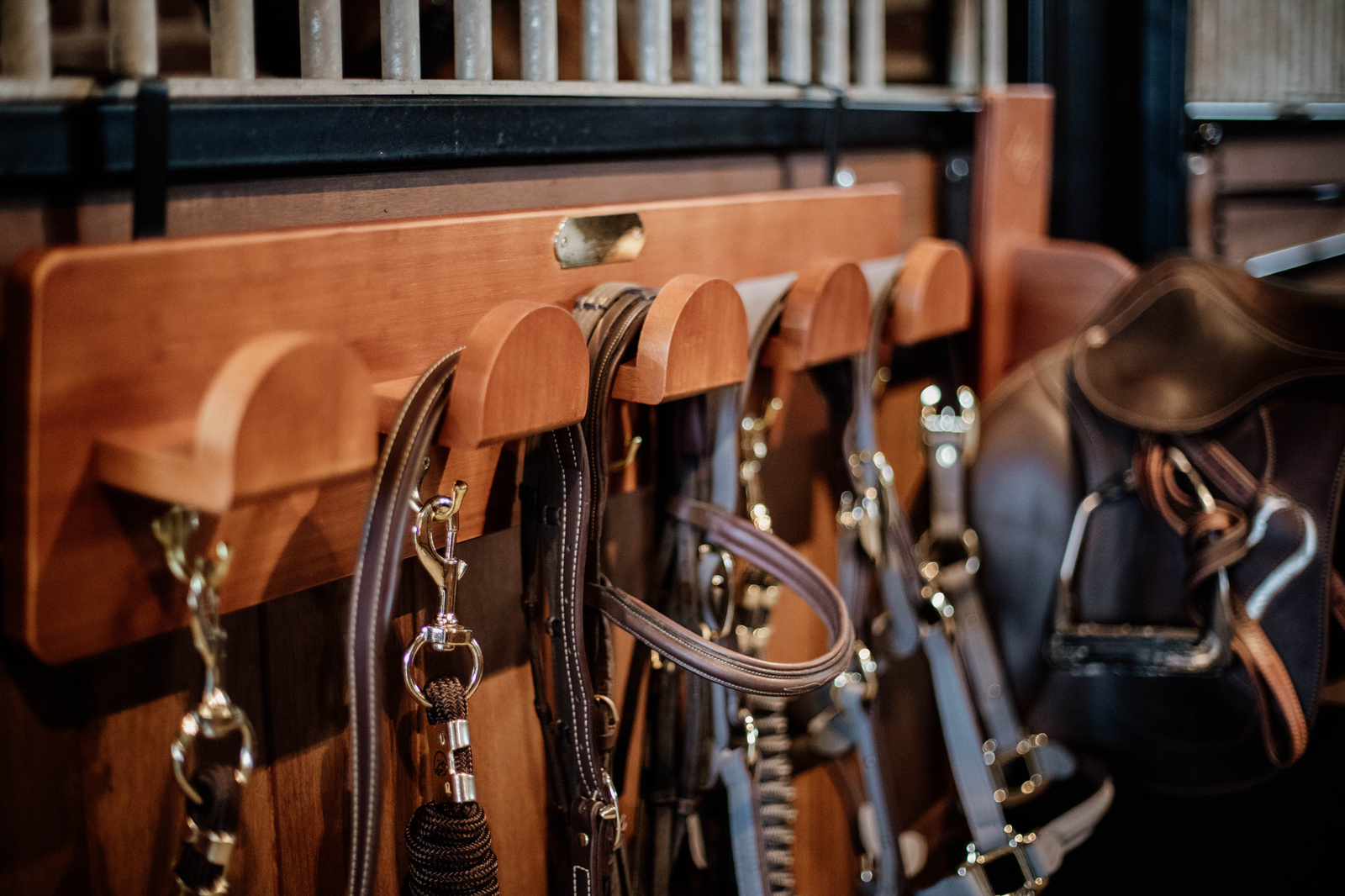 Zadbaj o najlepsze wyposażenie swojego siodlarni dzięki eleganckiemu i praktycznemu wieszakowi z Grooming Deluxe.