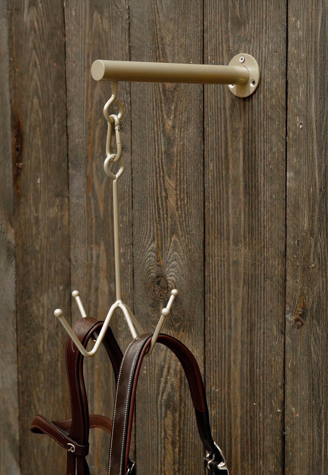 Eleganckie i wytrzymałe rozwiązanie do organizacji ogłowi, kantarów i innych akcesoriów jeździeckich. Idealnie sprawdzi się w czasie czyszczenia sprzętu oraz do organizacji porządku w siodlarni.