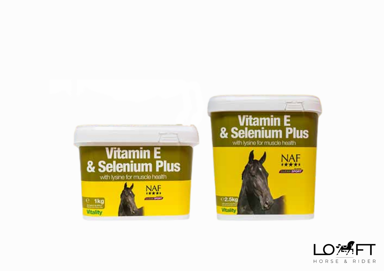 Suplement dla koni zawierający witaminę E, selen oraz lizynę – składniki niezbędne dla prawidłowego wzrostu masy mięśniowej, rozwoju i funkcjonowania organizmu.