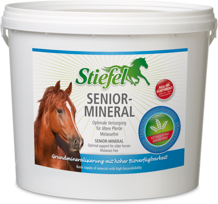 Z tego powodu konie w wieku senioralnym są szczególnie narażone na występowanie niedoborów witamin, minerałów i pierwiastków śladowych. Senior Mineral dostarcza zbilansowane ilości niezbędnych mikro- i makroelementów, które mogą skutecznie wspierać odporność, procesy regeneracyjne oraz utrzymanie dobrej kondycji organizmu.