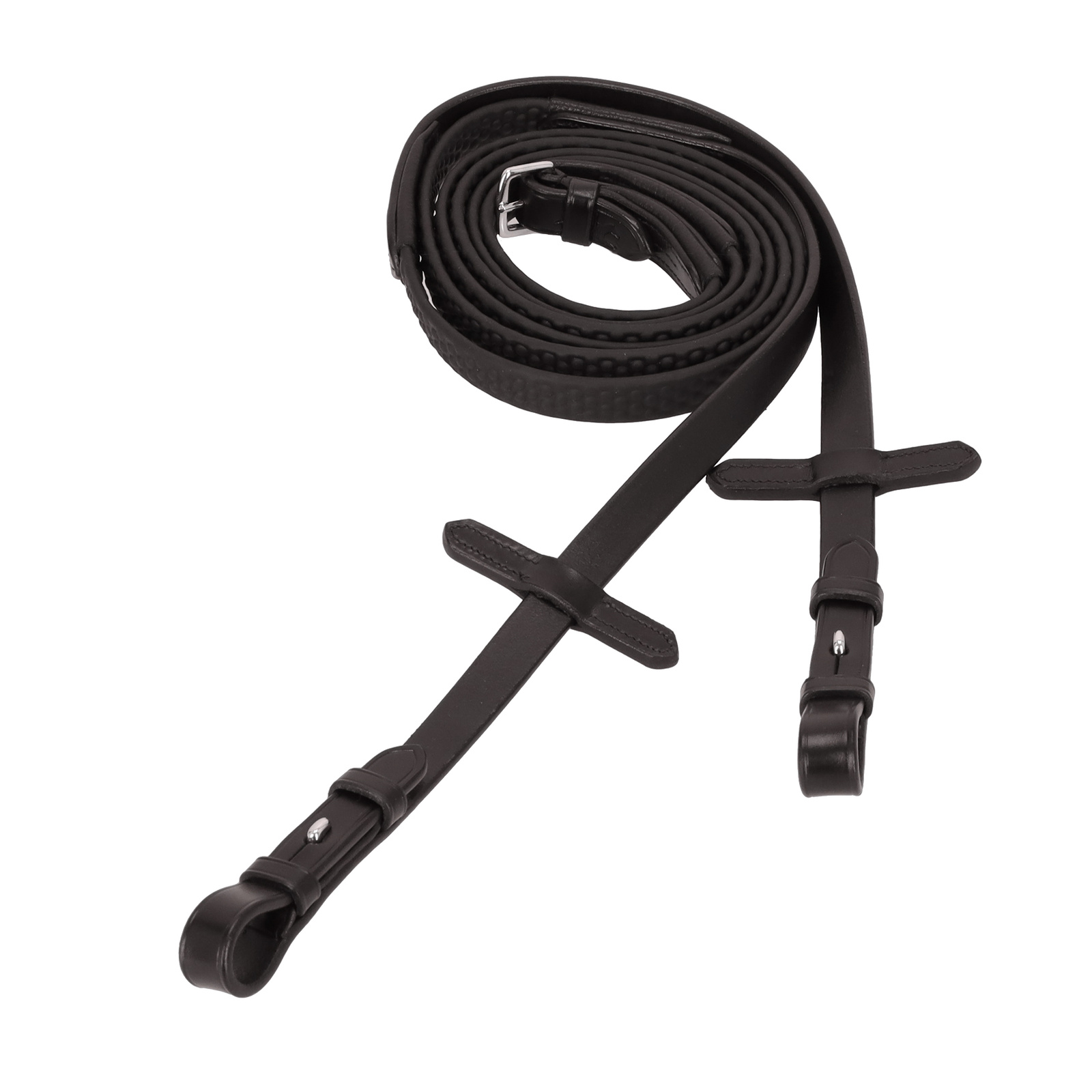 Struktura wypustek skutecznie zapobiega wyślizgiwaniu się wodzy z dłoni, nawet gdy są one wilgotne lub zabrudzone.