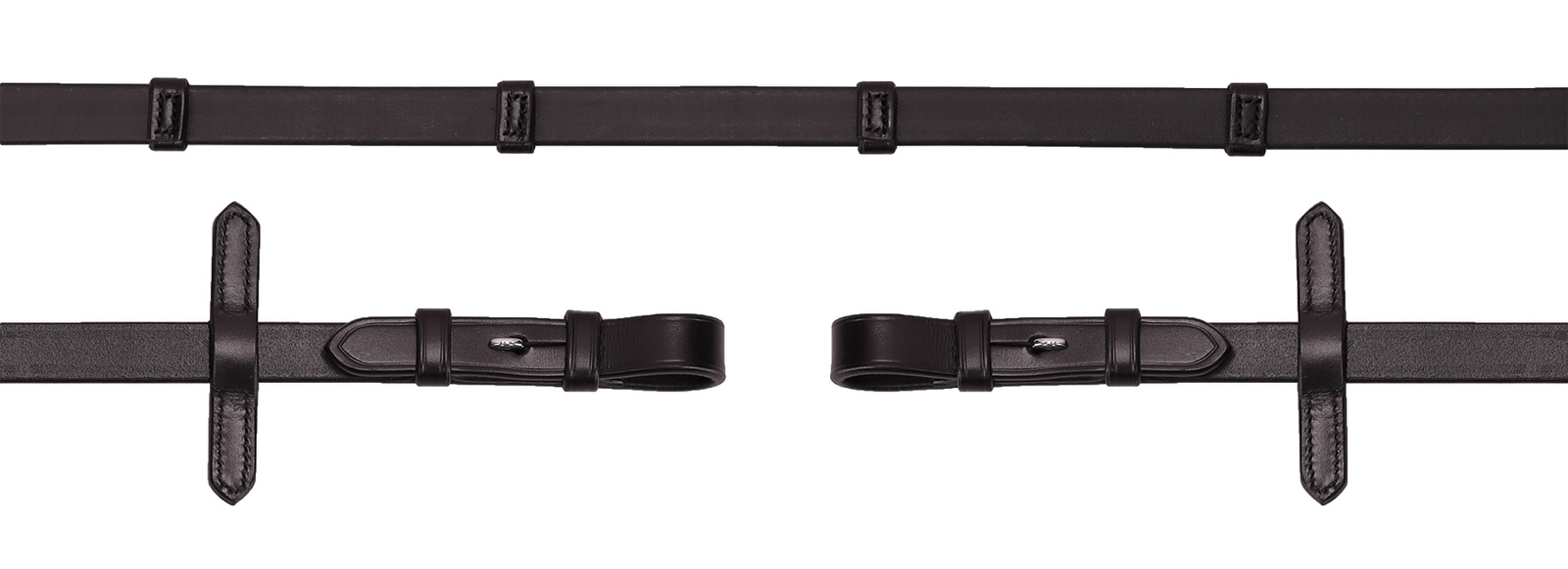 Wyposażone są w skórzane stopery, które skutecznie zapobiegają wyślizgiwaniu się wodzy z dłoni, nawet gdy są one wilgotne lub zabrudzone.