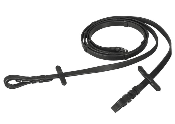 Wodze wykonane z bardzo dobrej jakości skóry. Posiadają stopery oraz motylki do wytoku. Zapinane na klasyczne sprzączki. Elementy metalowe wykonane ze stali szlachetnej. Szerokość: 16 mm.