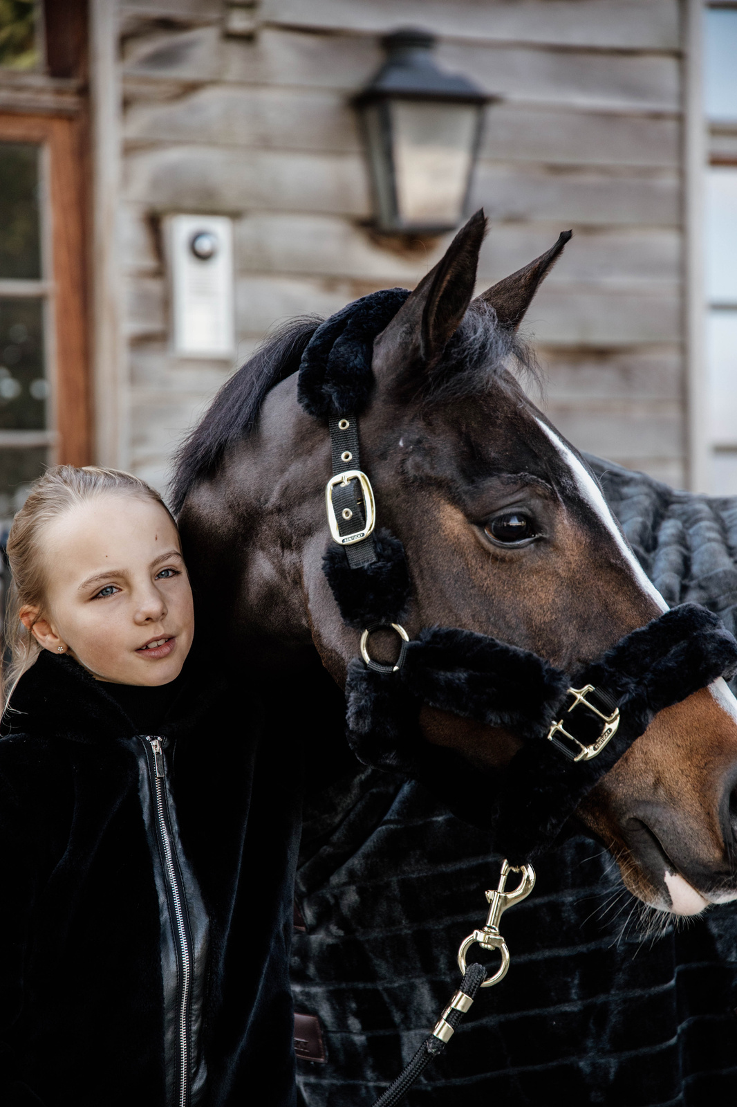 Pasek wykonany jest z wyjątkowo wytrzymałego nylonu połączonego z nowoczesnym sztucznym futerkiem Kentucky, które zostało naszyte bezpośrednio na nylon. Dzięki temu całość pozostaje niezwykle lekka, a jednocześnie bardzo trwała. Futro Kentucky jest miękkie, przyjazne dla skóry i zapewnia maksymalny komfort nawet podczas długich podróży, chroniąc delikatne miejsca potyliczne konia przed otarciami.