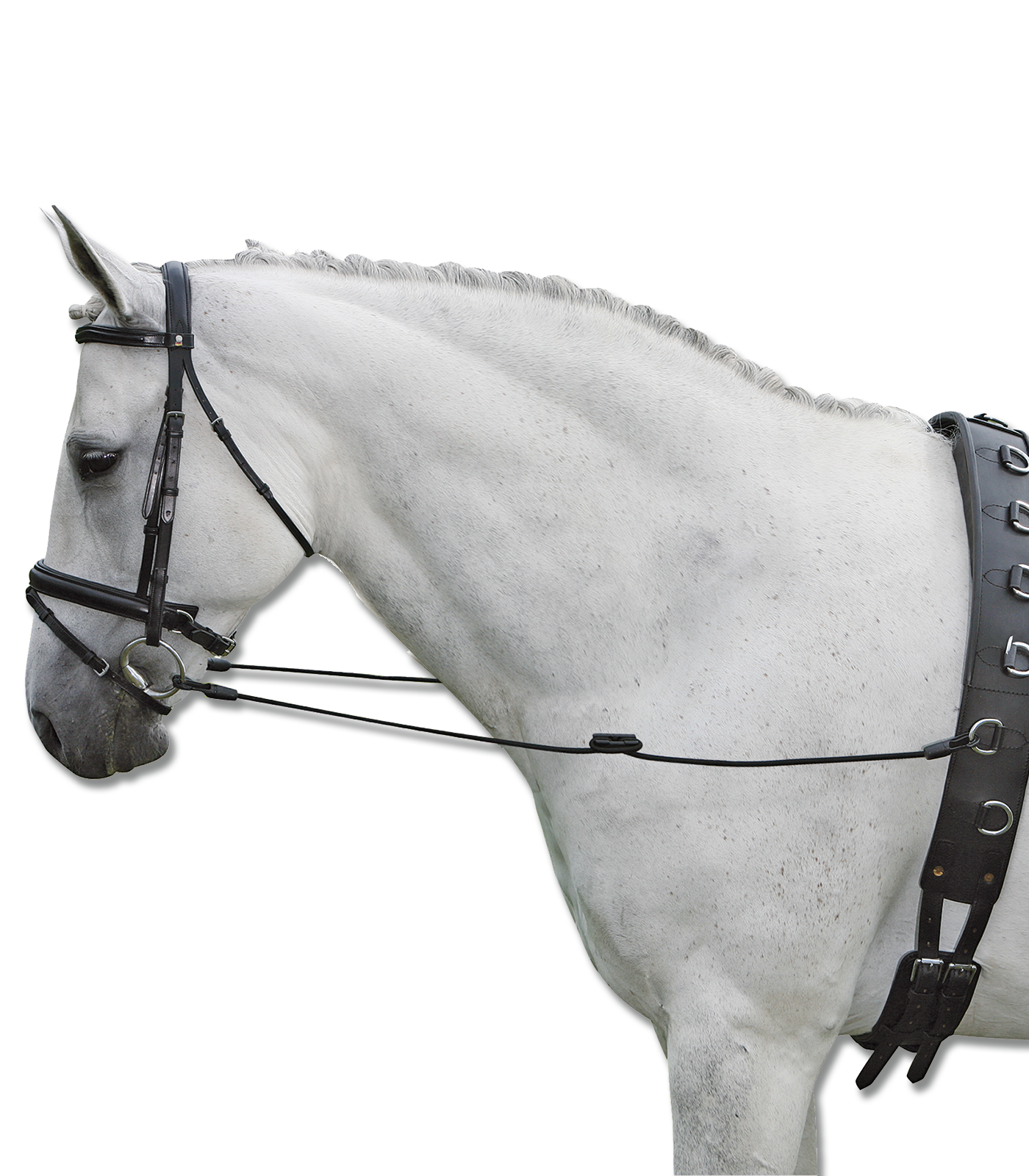 - Gumowe wypinacze wspierają prawidłowe ułożenie głowy i pracę konia podczas lonżowania.