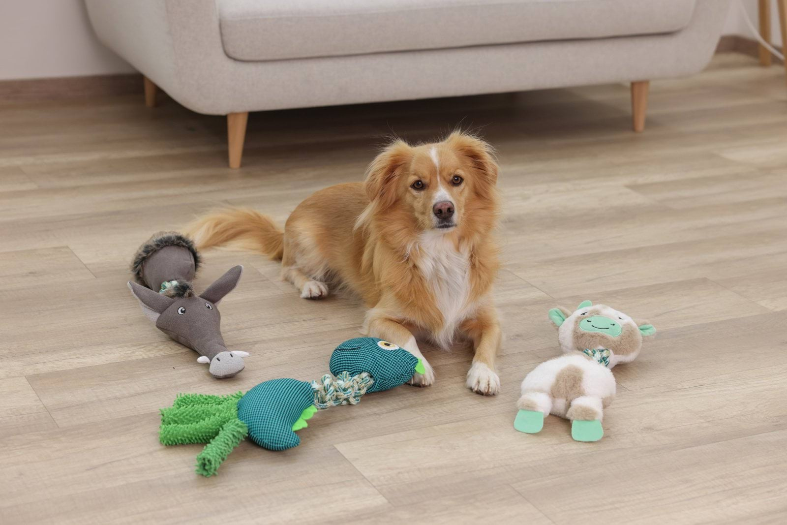 Zabawka dla psa w kształcie dzika, dzięki czemu stymuluje ciekawość psa, zachęcając do aktywnej zabawy.