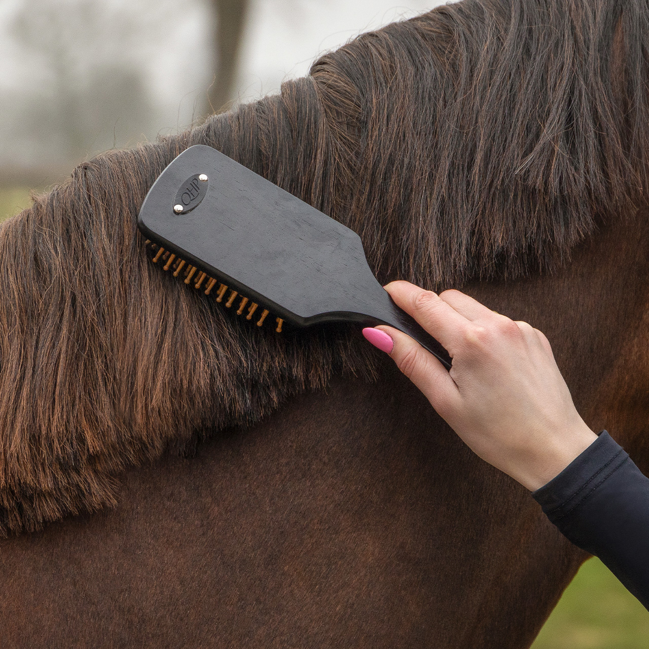 - Elegancki i funkcjonalny zestaw szczotek do codziennej pielęgnacji konia.