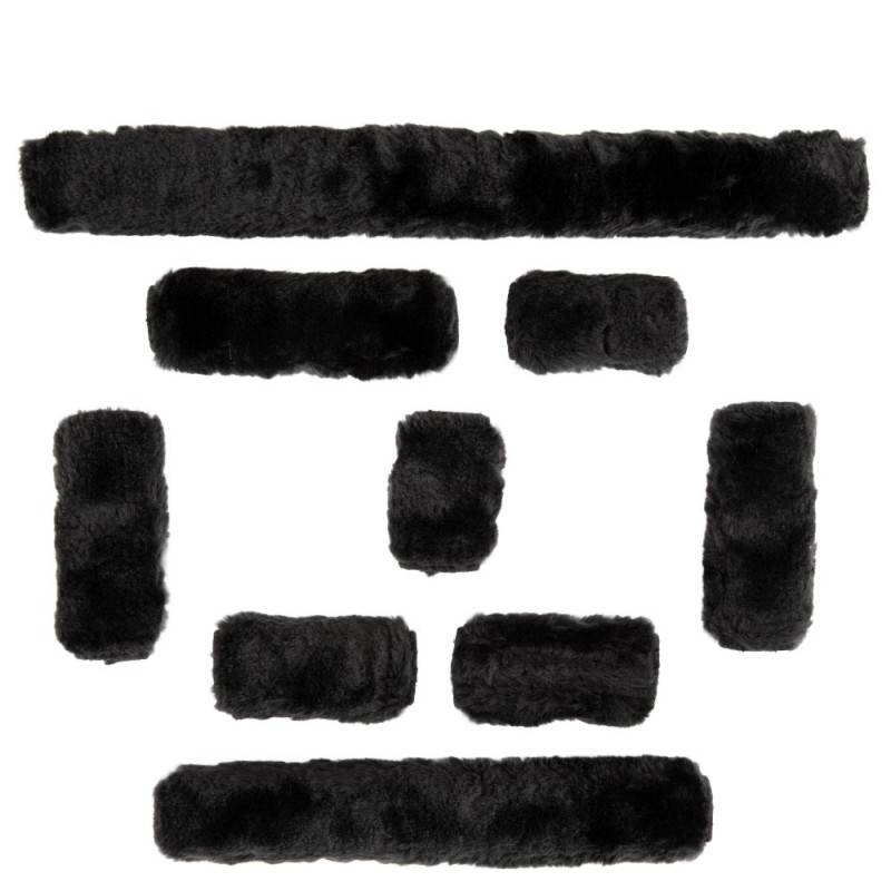 - Zestaw futerek z syntetycznej skóry owczej. Zapewniają optymalny komfort podczas transportu i są wyjątkowo przyjazne dla koni o wrażliwej skórze.