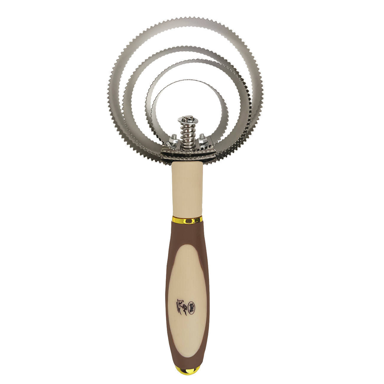 Metalowe zgrzebło wykonane ze stali nierdzewnej oraz plastiku.