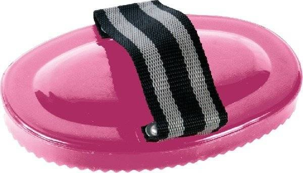 Plastikowe zgrzebło z wygodnym uchwytem.